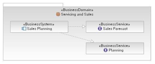provide (and depend upon). Again, this is described in some detail in Guideline: Business System, however it describes the provided/required functionality as "capabilities". So to recap let's look