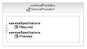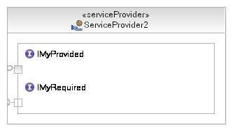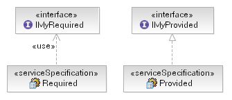 Note that the resulting structure will be identical for either ServiceType or MyService, the port indicates a required interface and a provided interface - possibly a callback interface which the client is required to provide. However, in some cases it is useful to explicitly separate out the required and provided capabilities into individual service descriptions. In this case we need two classes realizing the service specifications we introduced above. The figure below demonstrates these classes.